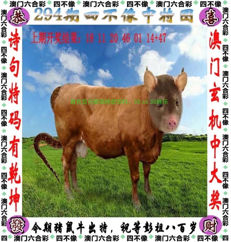 294期{今期猪鼠牛出特,祝等彭祖八百岁}开鼠18